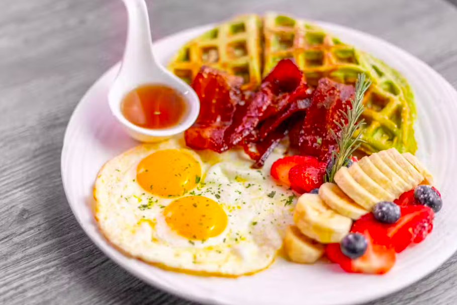 We started with one simple idea: take the comfort of classic West Coast brunch, and wake it up with bright Asian flavors we grew up with. That means curry hollandaise on a Florentine Benedict, crispy chicken over ginger rice, and a pandan waffle that tastes like Sunday mornings, both familiar and new.